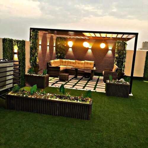 - إضافة إضاءة أرضية حول البرجولة لتحديد المسار وإبراز التصميم.