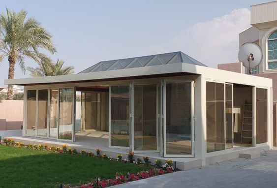 الألمنيوم والزجاج: مناسب للملاحق العصرية بفضل مظهره الأنيق وعزل الحرارة.