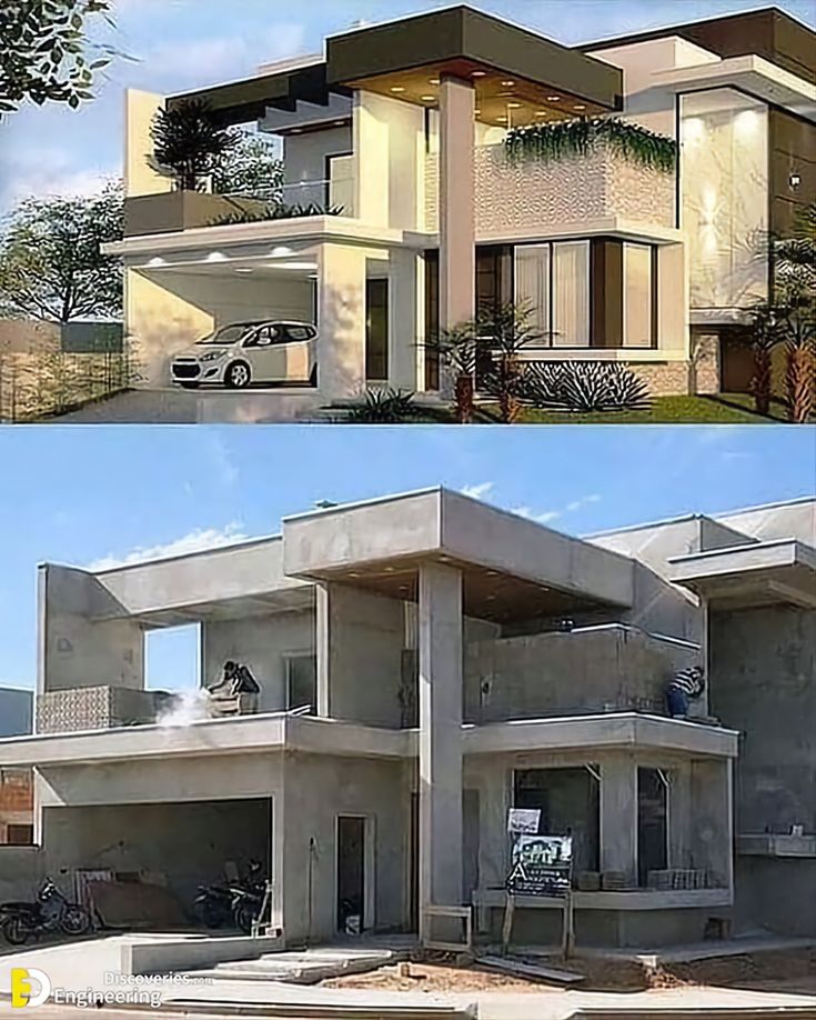 بعد الانتهاء من الأعمال الإنشائية، يتم الانتقال إلى أعمال التشطيبات للحصول على مظهر حديث.