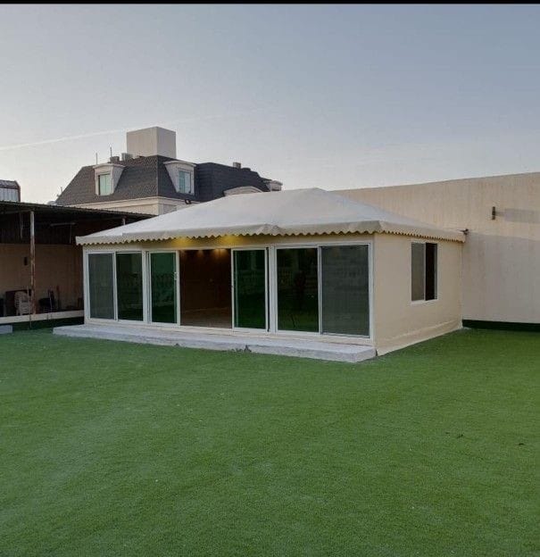 - ✅ عزل حراري وصوتي مميز: تساعد تقنيات العزل الحديثة في الحفاظ على درجة الحرارة داخل الملحق أو بيت الشعر، مما يجعله مريحًا في جميع الفصول.